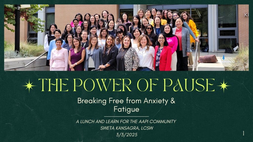 We hustle, we grind, we worry, we give—but at what cost? During this Mental Health Monday for the AAPI community, Sweta Neygandhi, LCSW led us in learning to pause, breathe, and take back control. Let’s explore how cultural narratives shape our stress, and more important, how we can rewrite them. Expect deep conversations, game-changing strategies, and a space to just be.